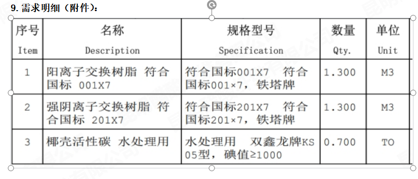2.1采購范圍:采購滿足(技術(shù)文件)要求的 購買 陽離子交換樹脂 符合國標(biāo) 001X7 等
